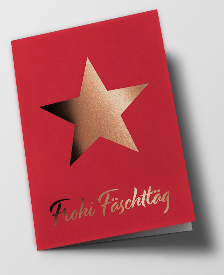Unsere hochwertige Klappkarte im C6-Format besticht durch mutige Neon-Sonderfarben und edle Goldakzente, die dem Design seinen unverwechselbaren Schliff verleihen. Nachhaltigkeit trifft hier auf Design – gedruckt in Deutschland auf ungestrichenem, FSC-zertifiziertem 300 g Papier.