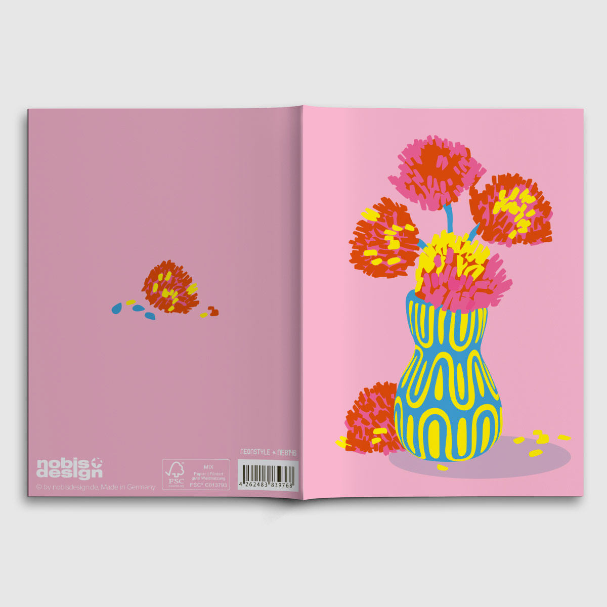 Notizheft DIN A6, 64 beschreibbare Seiten, 80g Papier - blanko, Umschlag 190g Naturpapier, gedruckt mit Pantone Neon-Sonderfarben. FSC-zertifiziert.