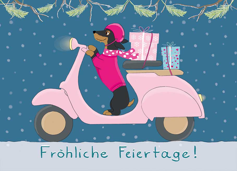 Postkarte - m-illu - Dackel Roller