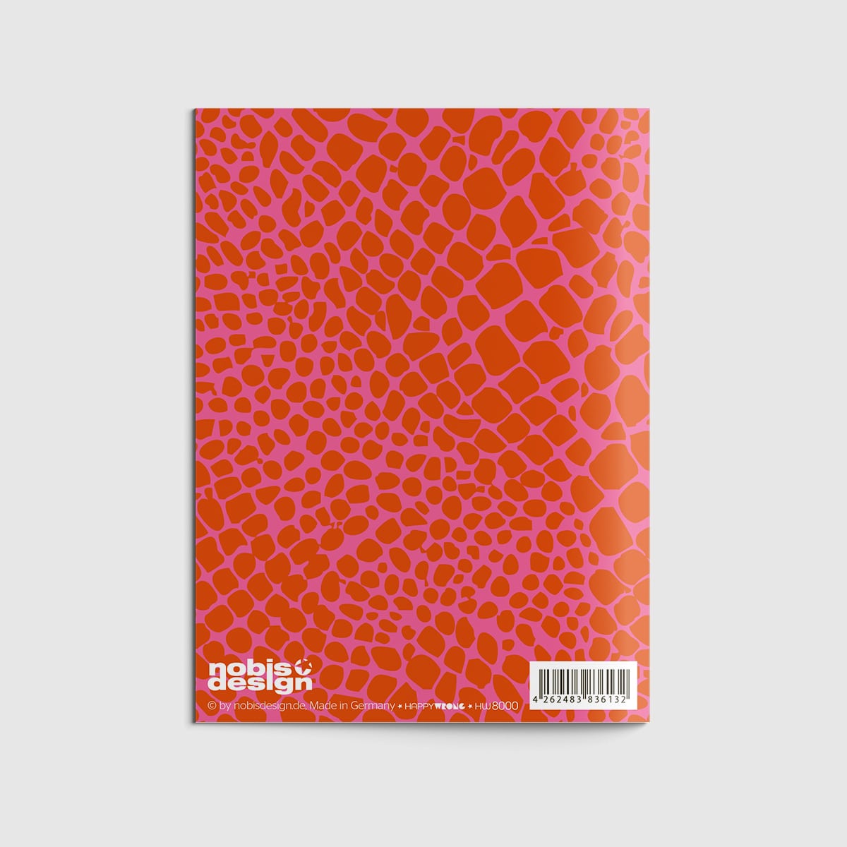A6 notebook, 64 writable pages, 80g paper – blank, cover 190g uncoated paper, printed with Pantone neon special colours. FSC certified.
