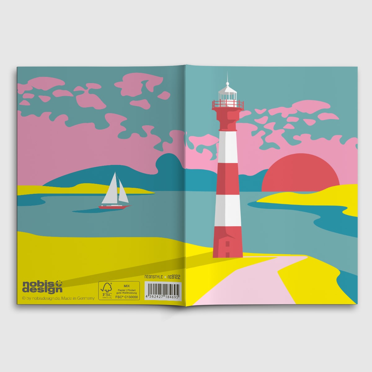 A6 notebook, 64 writable pages, 80g paper – blank, cover 190g uncoated paper, printed with Pantone neon special colours. FSC certified.