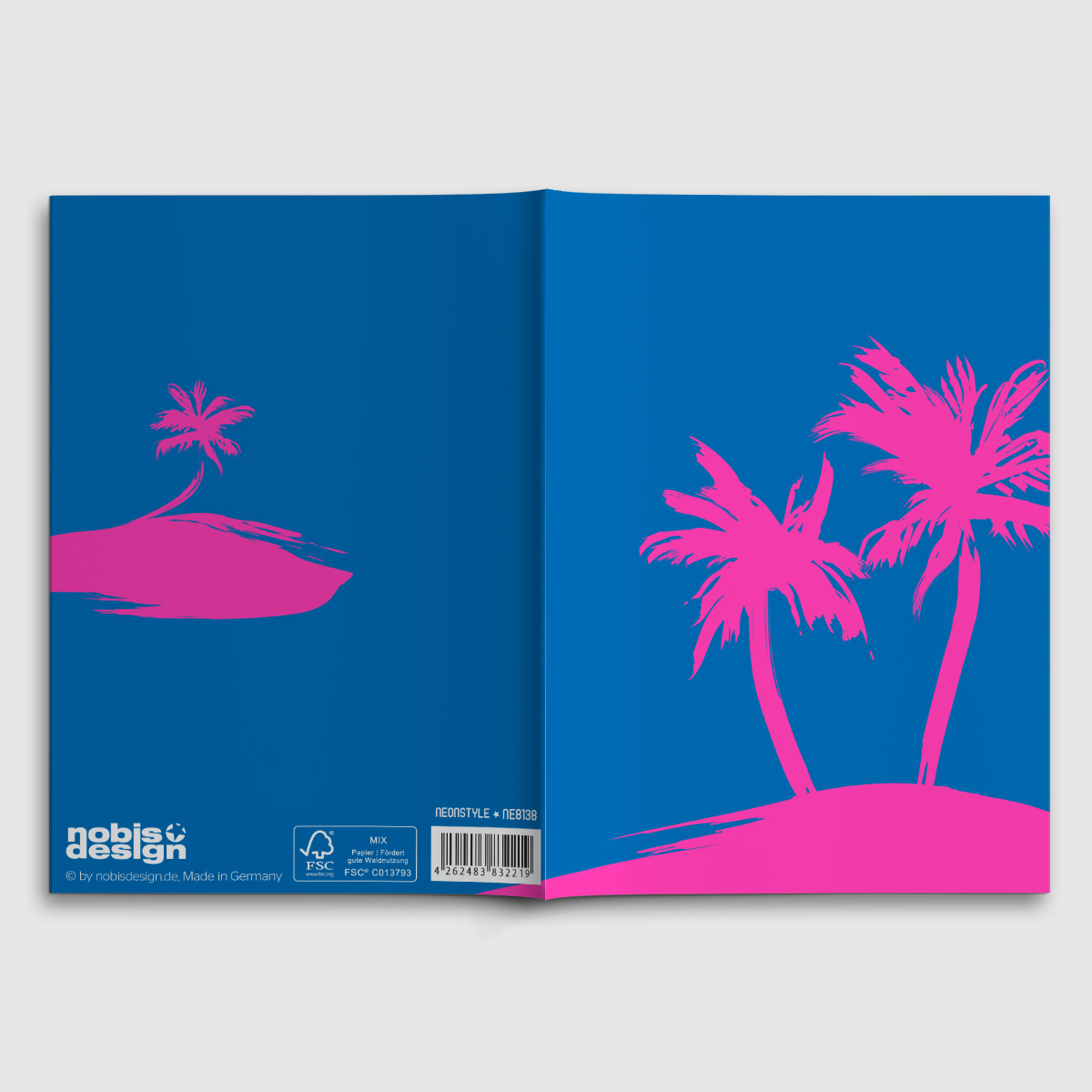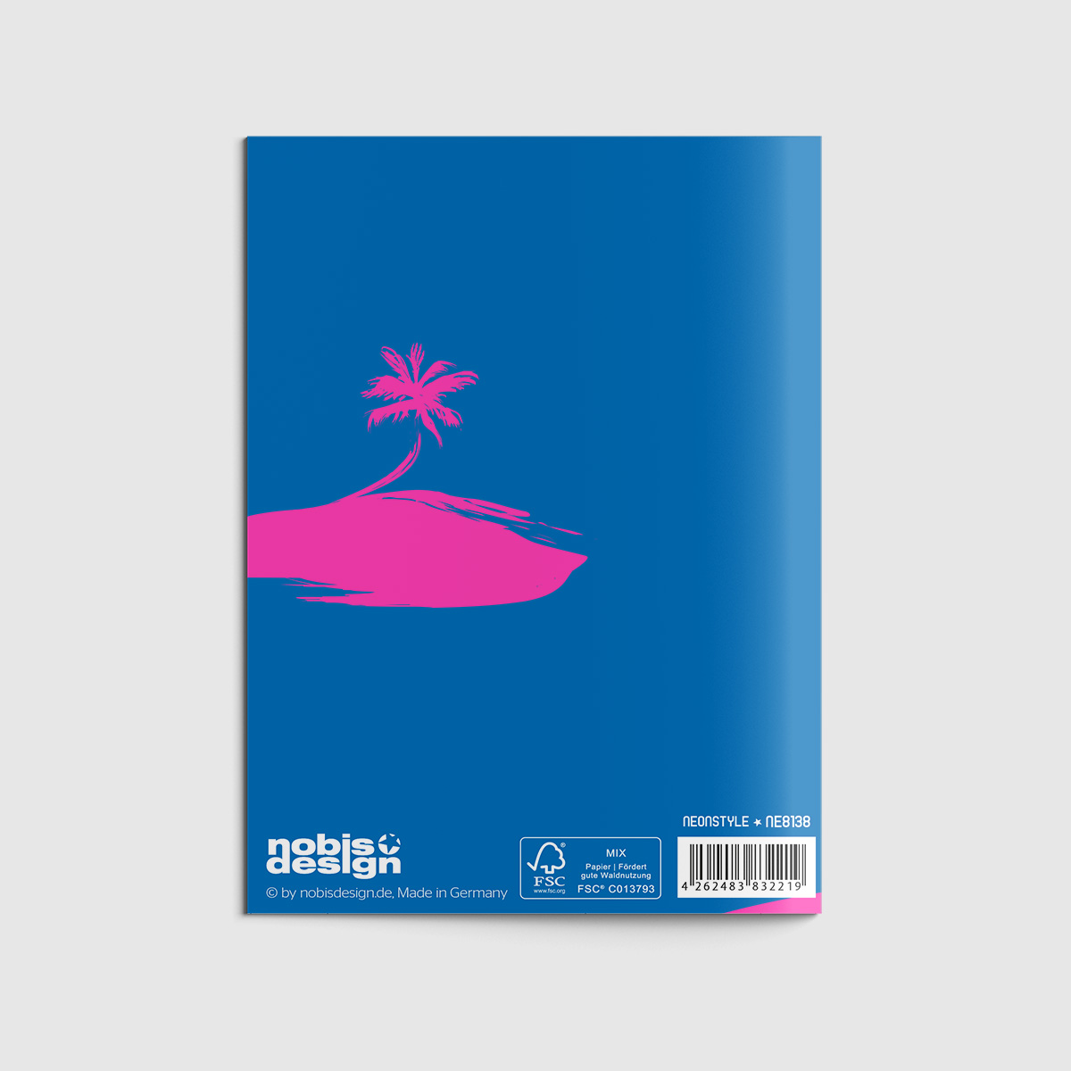 A6 notebook, 64 writable pages, 80g paper – blank, cover 190g uncoated paper, printed with Pantone neon special colours. FSC certified.