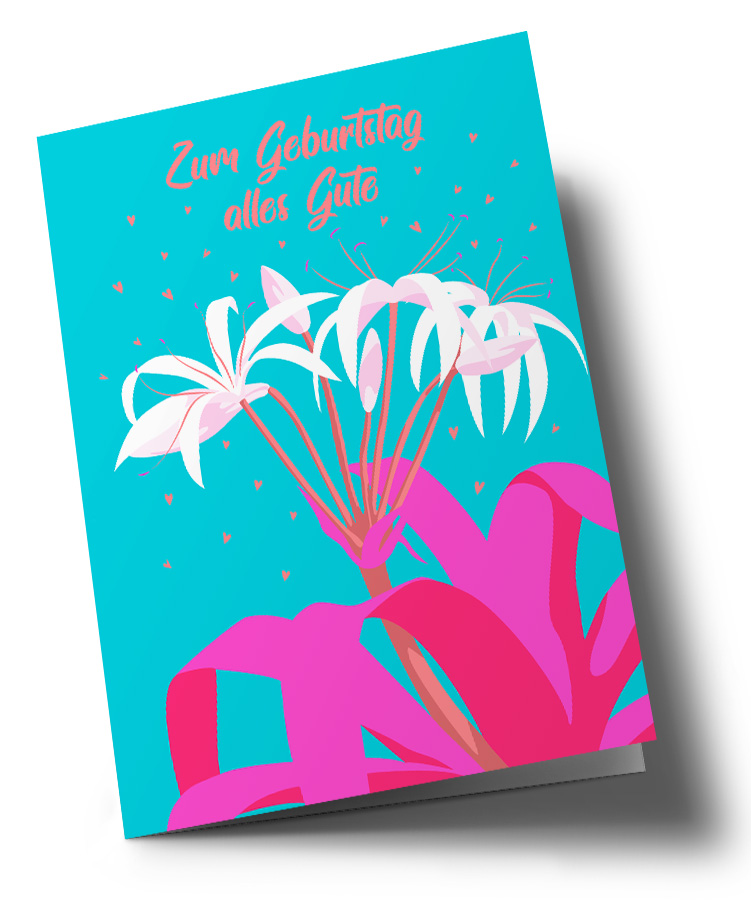 Klappkarte C6, gedruckt auf hochwertigem ungestrichenem 300 g Papier mit Pantone Neon-Sonderfarben, FSC-zertifiziert.