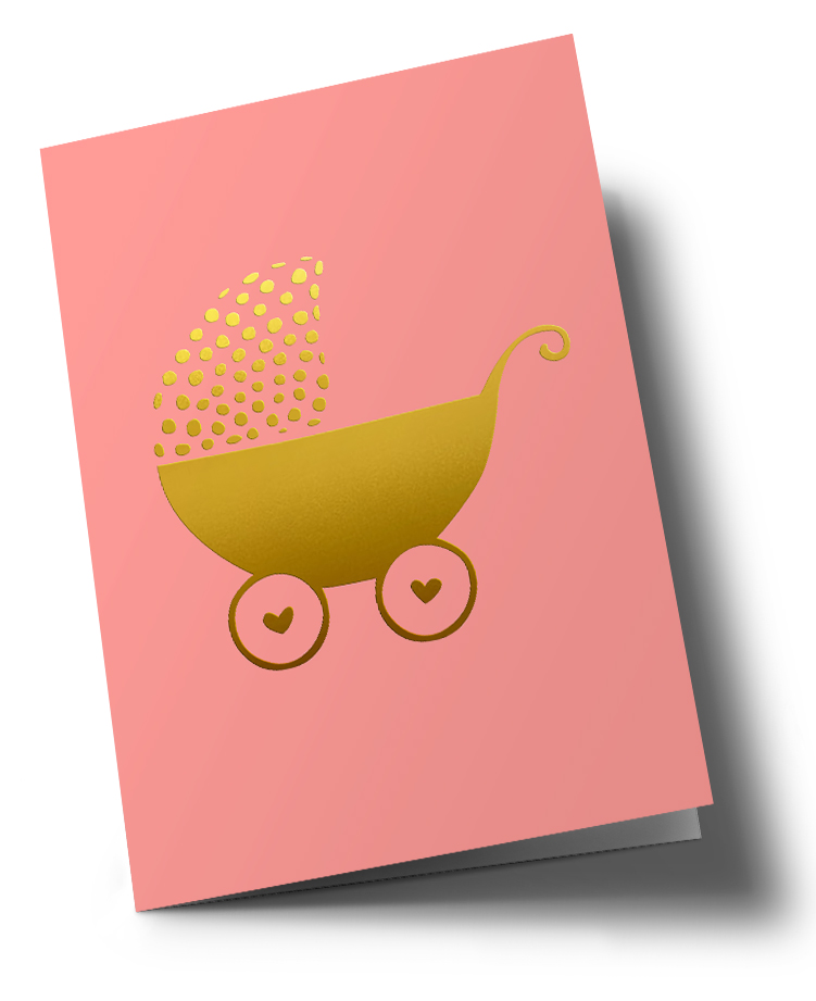 Klappkarte C6, gedruckt in Deutschland auf hochwertigem ungestrichenem 300 g Papier mit Pantone Neon-Sonderfarben. Druckakzente in Goldfolie. FSC-zertifiziert.