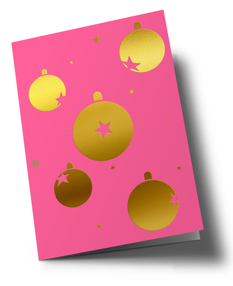 Klappkarte C6, gedruckt in Deutschland auf hochwertigem ungestrichenem 300g Papier mit Pantone Neon-Sonderfarben. Druckakzente in Goldfolie. FSC-zertifiziert.