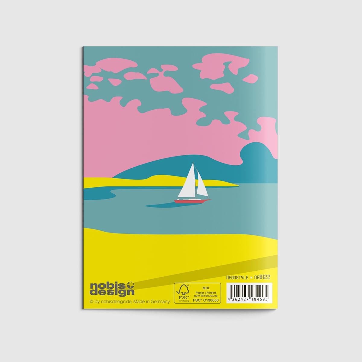 Notizheft DIN A6, 64 beschreibbare Seiten, 80g Papier - blanko, Umschlag 190g Naturpapier, gedruckt mit Pantone Neon-Sonderfarben. FSC-zertifiziert.