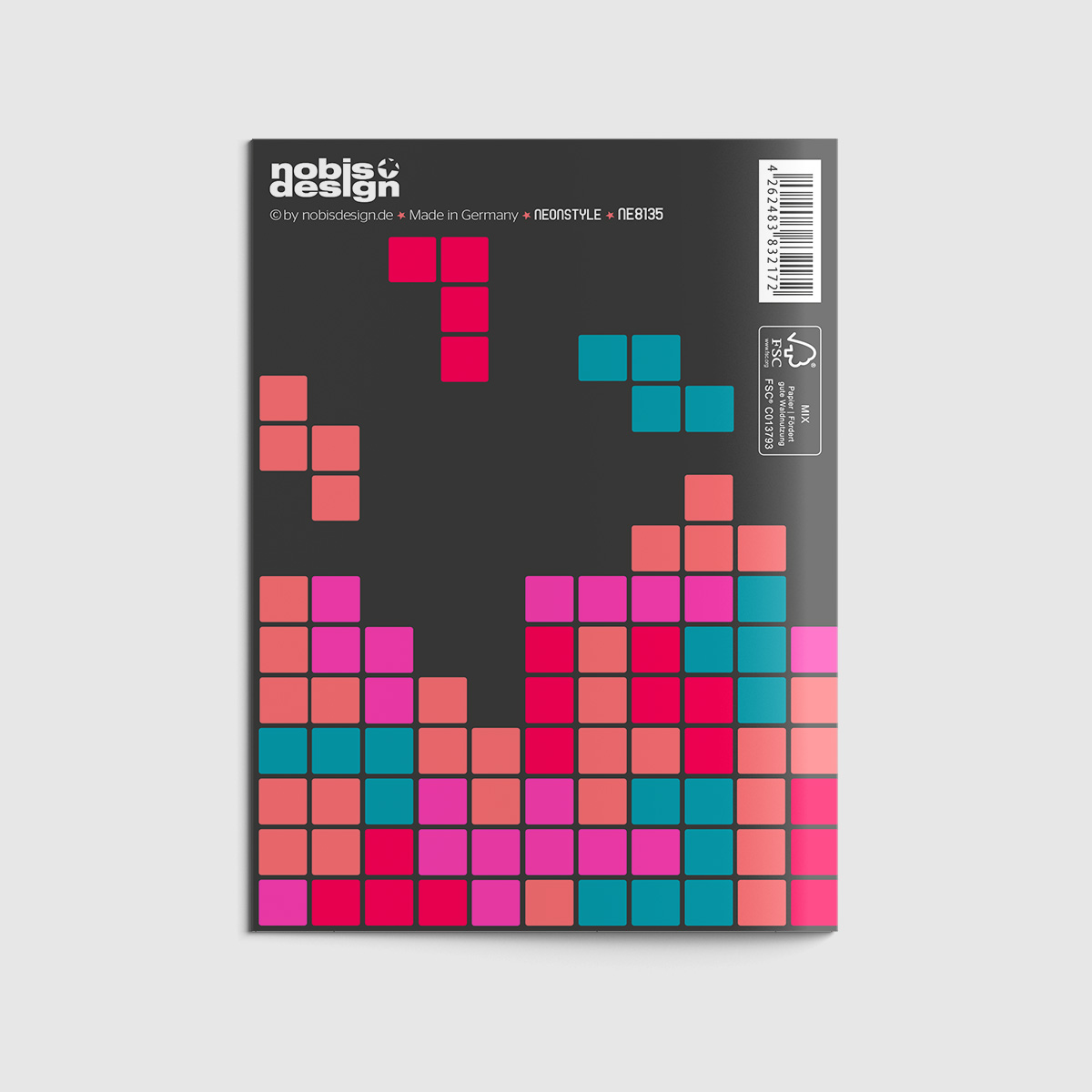 Notizheft DIN A6, 64 beschreibbare Seiten, 80g Papier - blanko, Umschlag 190g Naturpapier, gedruckt mit Pantone Neon-Sonderfarben. FSC-zertifiziert.