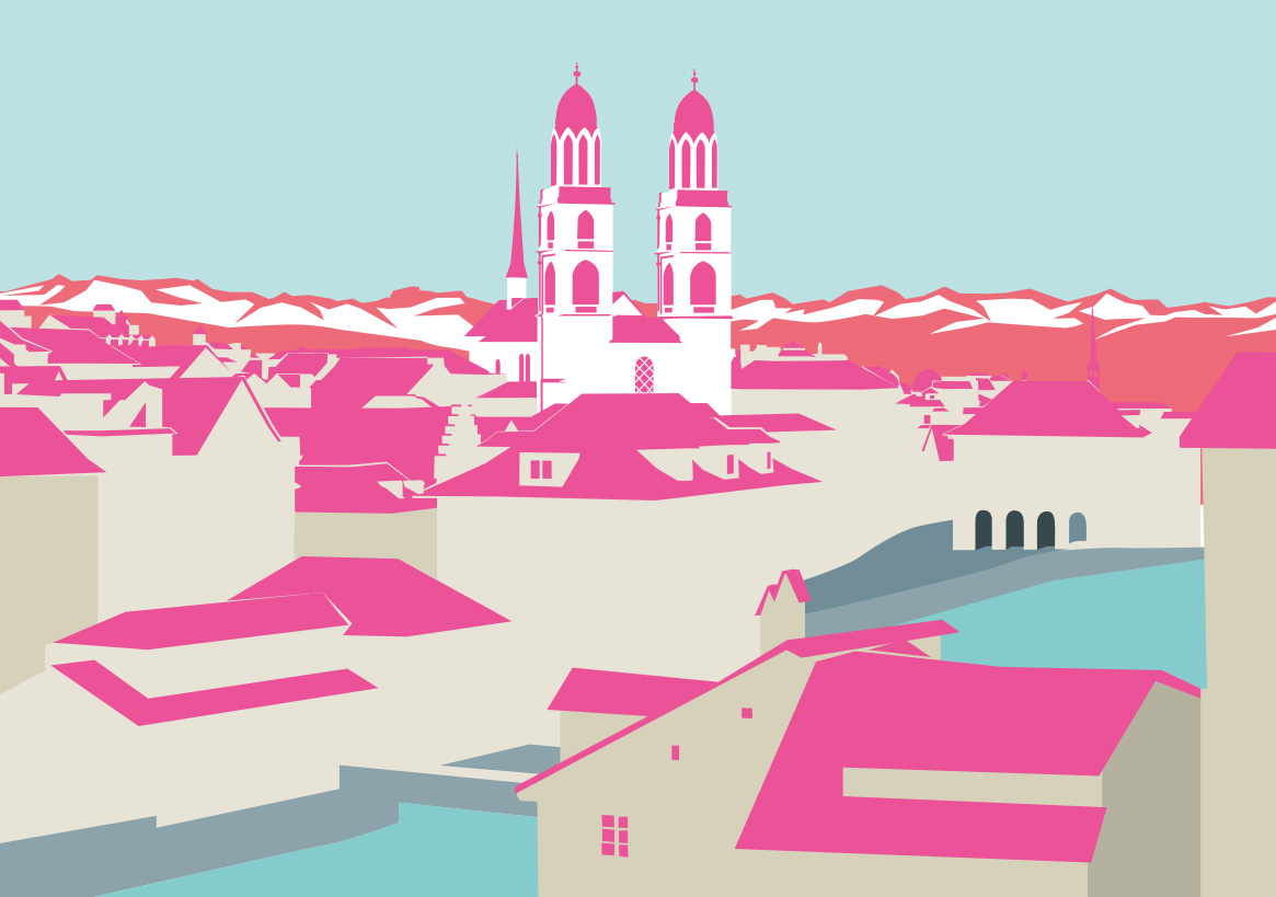 Postkarte -Bon Voyage- Münster, Zürich, Switzerland