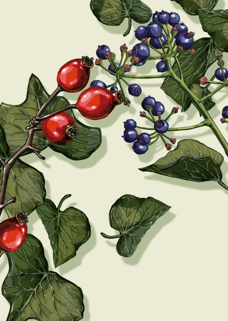 Holzschliffpappe. Rückseite mit liebevollen Illustrationen gestaltet.