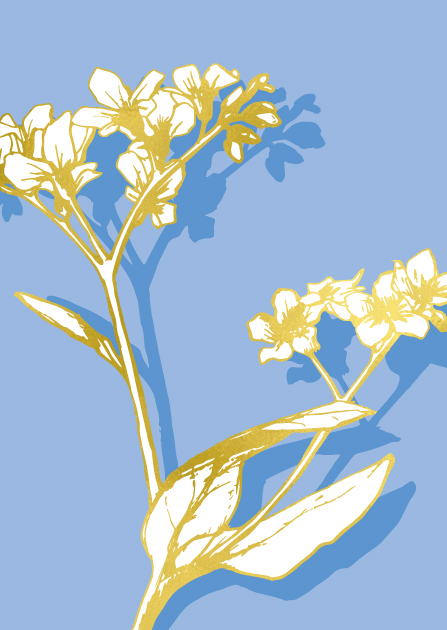 Postkarte A6, gedruckt in Deutschland auf hochwertiger 580g Holzschliffpappe mit partieller Goldfolienprägung. Rückseite mit liebevollen Illustrationen gestaltet.