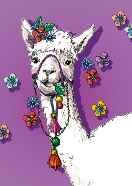 Holzschliffpappe. Rückseite mit liebevollen Illustrationen gestaltet.